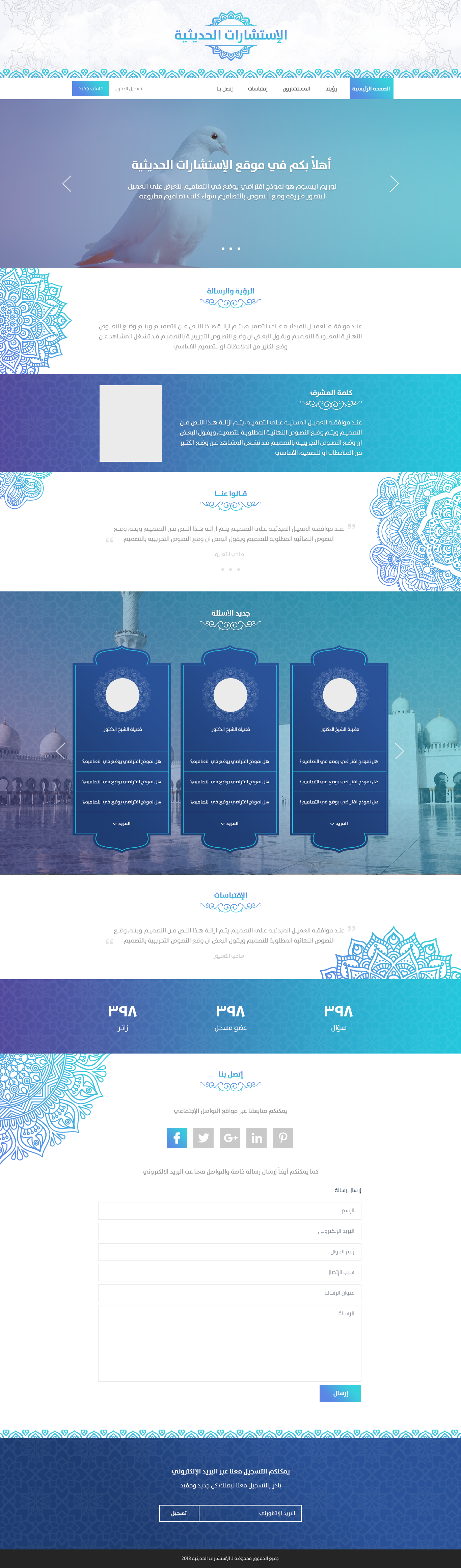 تصميم موقع الاستشارات الحديثية