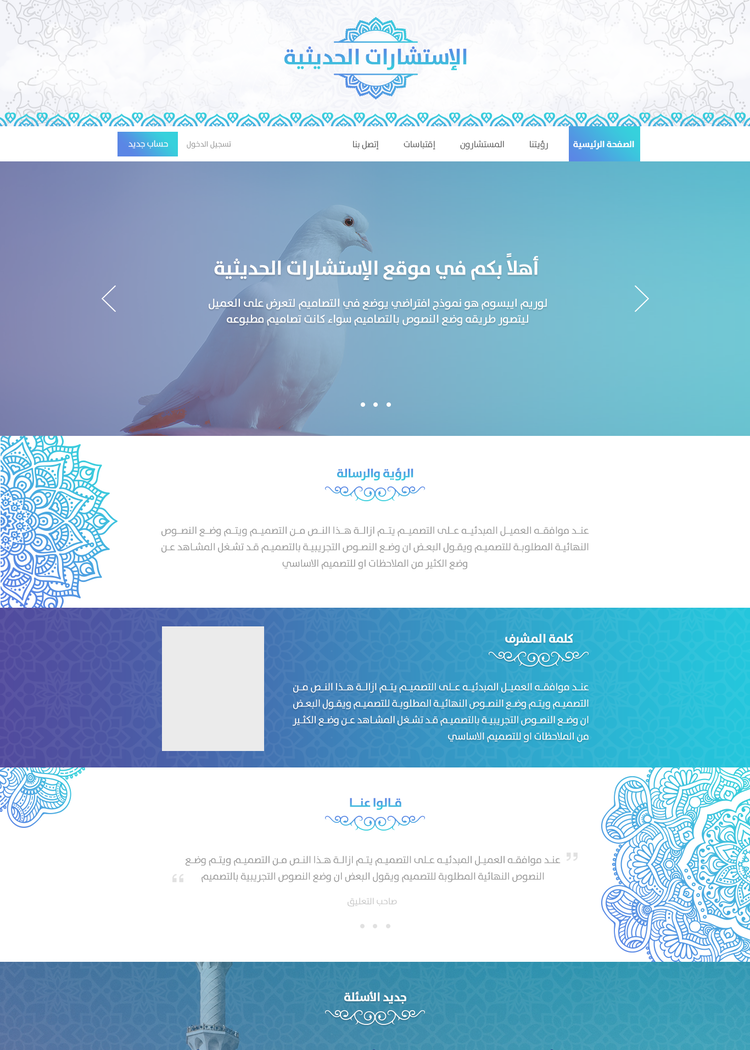 تصميم موقع الاستشارات الحديثية